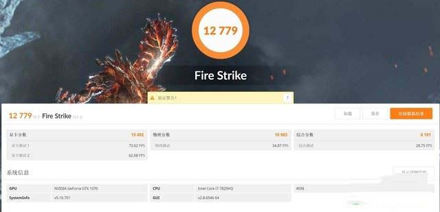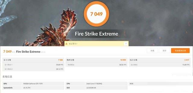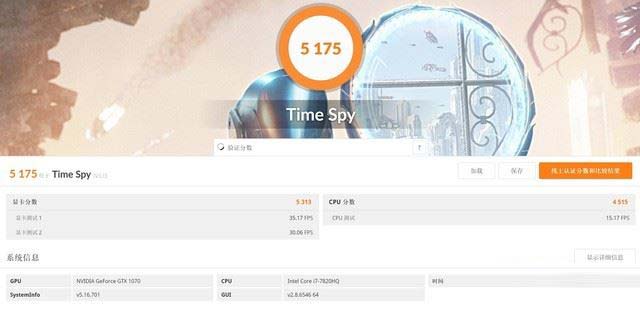 3種測試模式得分:Time Spy:5313 FSE:7580 FS:15492