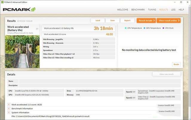 PCMark 8 Work accelerated續航時間為3小時18分鐘