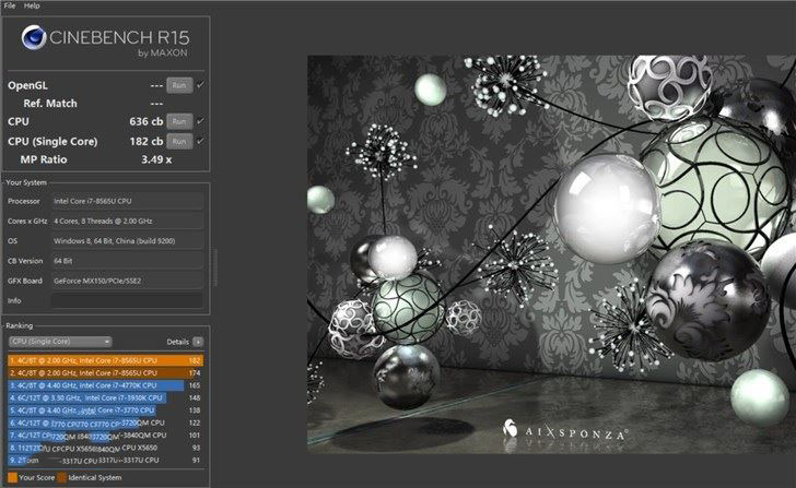 在CineBench跑分中,搭載i7-8565U的華碩靈耀Deluxe14跑分636,相比i7-8550U的524分提升了21%,相比上一代的i7-7500U的330分提高了48%。