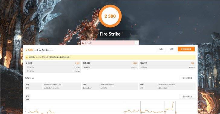 華碩靈耀Deluxe14搭載的顯卡為MX 150,3Dmark Fire Strike的跑分為2580分,成績并不是很高,但是考慮到機身厚度只有15mm,這也可以理解。雖然這塊MX 150沒有滿血版那么兇猛,但是應對《英雄聯盟》這類的網游也是足夠了的。