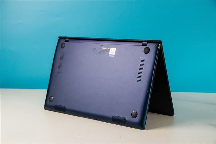 最后,我們再來看一下這款筆記本的點睛之筆——“小翹跟轉軸”。官方稱華碩靈耀Deluxe14 13.3英寸筆記本采用了獨樹一幟報道小翹跟轉軸設計,約143°的屏幕開合角度,打開筆記本的同時鍵盤自動上升3°,從而達到最舒適的打字角度。不僅如此,這種翹臀設計還可以提升散熱的和音效的表現。