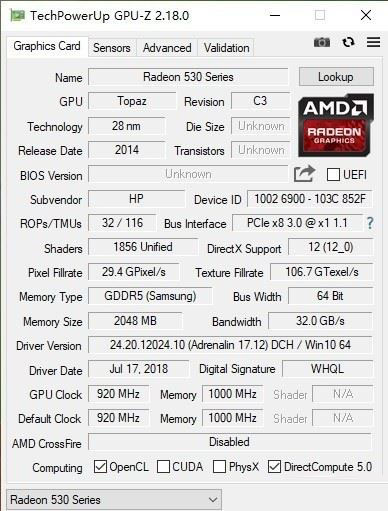 另一個“青春”點則是顯卡。惠普星14青春版采用了AMD Radeon 530 2GB獨顯。這款獨顯擁有2GB GDDR5顯存,顯存位寬64位,核心頻率920MHz,顯存頻率1000MHz。