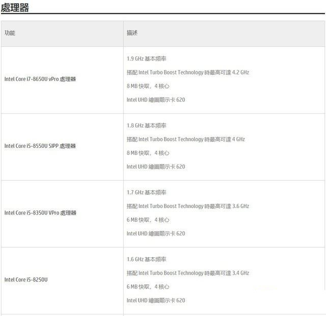從惠普官網(wǎng)(點此進入)給出的信息來看,Elitex21013 G3系列還支持英特爾酷睿i7 8650U vPro處理器,酷睿i5 8550U處理器,酷睿i5 8350U vPro處理器以及酷睿i5 8250U處理器。
