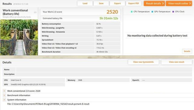 除了視覺體驗之外,主打商務辦公的筆記本自然要更加注重續(xù)航能力,那么惠普Elitex21013 G3的續(xù)航怎樣呢?我使用PCMark 8的Work模式對其進行了測試: