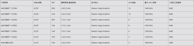 AMD銳龍3000移動級處理器家族列表及參數(shù)