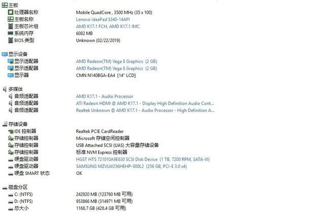 相對于產(chǎn)品本身而言,可能大家更希望先了解AMD Ryzen 5 3500U的性能以及該平臺下,產(chǎn)品的整體性能表現(xiàn)。所以我們先來看看評測產(chǎn)品的配置情況。我手上這臺小新14銳龍版搭載了AMD Ryzen 5 3500U處理器、4GB+4GB內(nèi)存(支持20G內(nèi)存擴展)、256GB PCIe NVMe固態(tài)硬盤+1TB機械硬盤,顯卡則采用了處理器自帶的AMD Radeon Vega 8集成顯卡。
