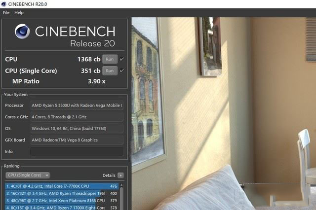 CINEBENCH R20是更新不久的軟件,所以目前還沒有大量的測試數(shù)據(jù)做參考,其單核成績?yōu)?51cb,多核分數(shù)為1368cb,大家只需要對這些分數(shù)留有印象即可。