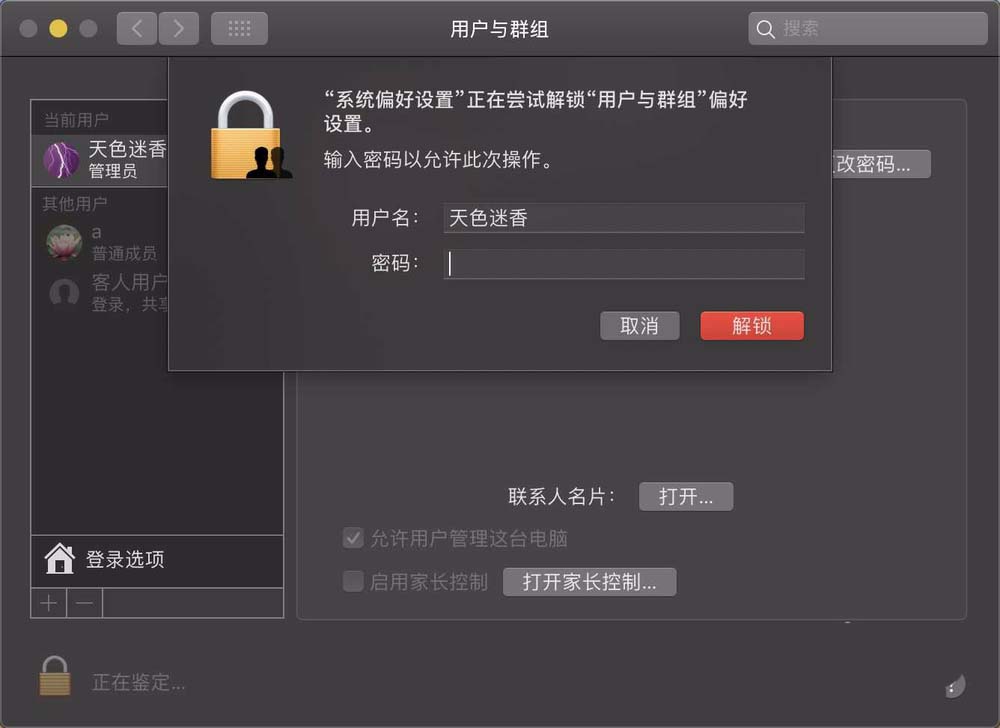 7、輸入密碼解鎖,然后把兩個(gè)允許勾上。