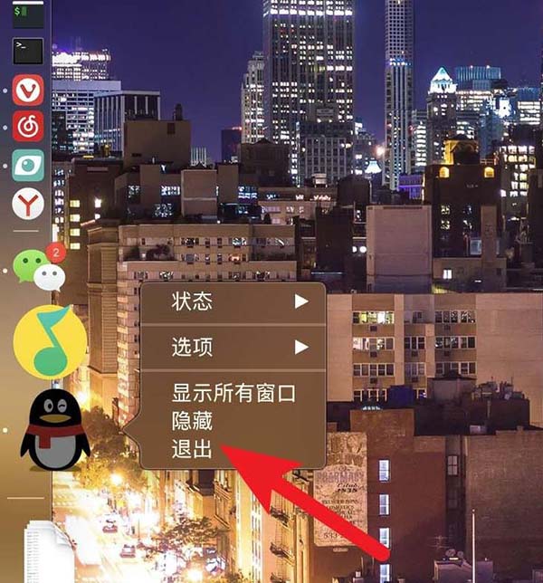 1、看左邊這個APP是否打開了,打開了的,那么選擇它,右鍵選退出。