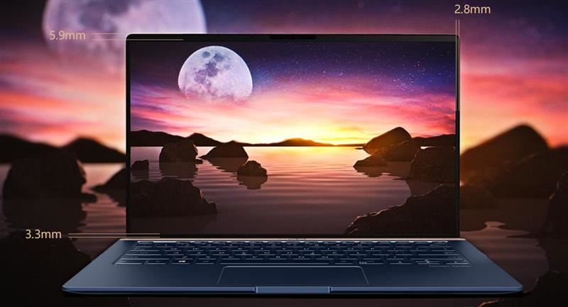 靈耀U一代也采用了三面窄邊框設計,屏占比達到了80%,這也是市面上標準的窄邊框筆記本所擁有的屏占比。