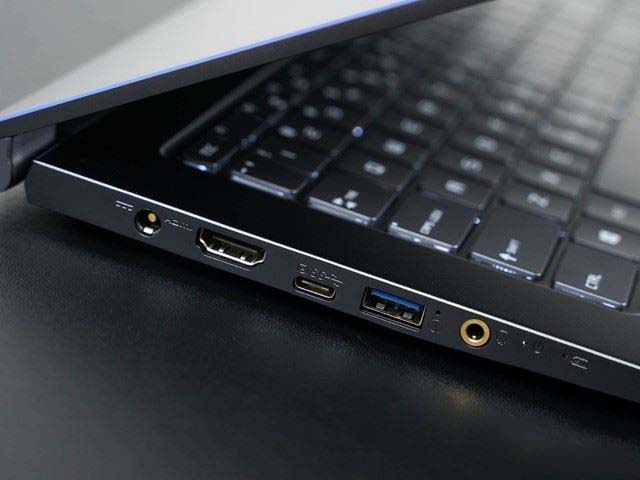 既然是商務設計風格的產(chǎn)品,接口部分自然是需要看重的一點,微星PS63 Modern的接口主要集中在機身左側(cè),從左到右依次為電源接口、HDMI接口、Type-C接口、USB3.1接口以及3.5mm耳機麥克風二合一接口,旁邊還帶有電源指示燈以及電量指示燈。