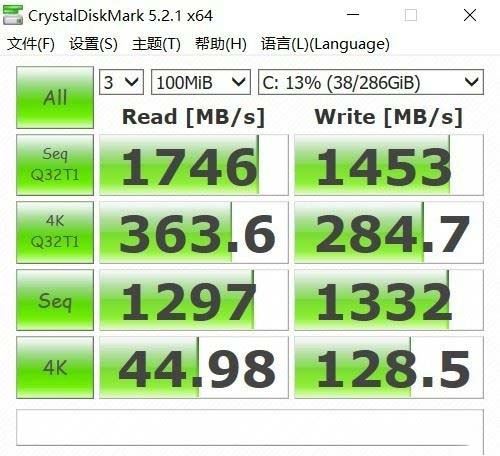 磁盤性能方面的表現(xiàn)不錯,1746MB/s的順序讀取速度和1453MB/s的順序?qū)懭胨俣葘儆谀壳肮P記本NVMe固態(tài)硬盤的標準水平,而45MB/s的4K讀取速度屬于比較好的水平,這對于提高日常使用的流暢度有較大幫助。