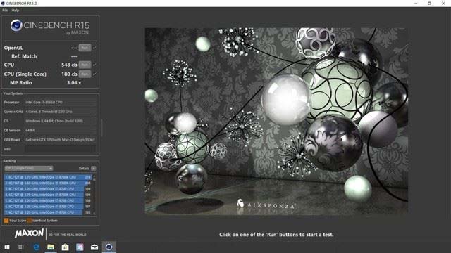 CPU性能方面我們選擇了CinebenchR15進行測試,微星PS63 Modern的單線程得分180cb,多線程得分548cb,從結(jié)果上看這顆i7-8565U處理器在單核方面表現(xiàn)很優(yōu)秀,而多核方面表現(xiàn)尚可,屬于中規(guī)中矩的水平。