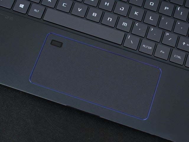 微星PS63 Modern的鍵盤區(qū)與C面為一體式設計,按鍵尺寸相較其他一些筆記本產(chǎn)品來說要更大,按壓的手感良好,雖然鍵程并不長,但反饋清晰,有明顯段落感。觸控板的設計比較特別,大家可以看到微星PS63 Modern的觸控板為細長設計,操作的區(qū)域更大,觸控體驗更佳,并且左上角還帶有一個電容式指紋識別模塊,彰顯了商務范。