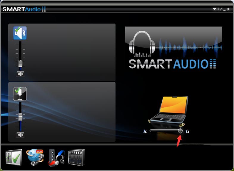 6、如果我們想要設(shè)置為右聲道,則把滑塊往右移即可,同理,如果是想要設(shè)置為左聲道,則往左邊滑動