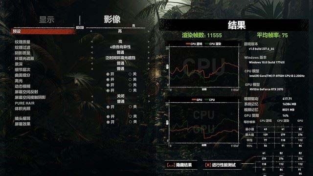另外我們還測(cè)試了《古墓麗影:暗影》。畫質(zhì)設(shè)置為1920×1080、開啟DX12、關(guān)閉垂直同步、系統(tǒng)內(nèi)置高畫質(zhì),運(yùn)行游戲內(nèi)置的Benchmark。最終得到平均75幀的成績(jī),流暢度非常不錯(cuò)。