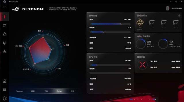 游戲模式成為近兩年游戲本宣傳的一個(gè)重要點(diǎn)。該模式的承載方式有兩種,一種是軟件承載,通過(guò)控制軟件進(jìn)行切換;另一種是軟硬件承載,提供快捷按鍵進(jìn)行切換。ROG槍神2s Plus也加入了類似的功能,而且做的更加豐富。
