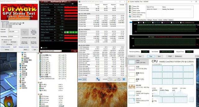 散熱部分也是重要的升級(jí)點(diǎn)。ROG槍神2s Plus采用了五熱管雙風(fēng)扇三出風(fēng)口設(shè)計(jì),相比上一代熱管增加了兩根,主要在顯卡和顯存散熱方面進(jìn)行了增強(qiáng)。我們對(duì)ROG槍神2s Plus進(jìn)行了雙烤測(cè)試(顯卡:1920×1080、8X MSAA,處理器:Stess FPU),得到了令人非常滿意的結(jié)果。