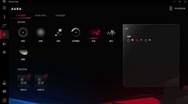 燈光部分,ROG槍神2s Plus的發(fā)光區(qū)域主要集中在A面Logo、C面鍵盤背光(四分區(qū))和前置海岸燈。三個(gè)發(fā)光區(qū)域全部支持全彩RGB,并且在燈光系統(tǒng)方面,ROG槍神2s Plus支持Aura Sync神光同步技術(shù),能夠提供一體感非常強(qiáng)的燈效體驗(yàn)。系統(tǒng)內(nèi)置了多達(dá)7種燈效,同時(shí)還可自定義。