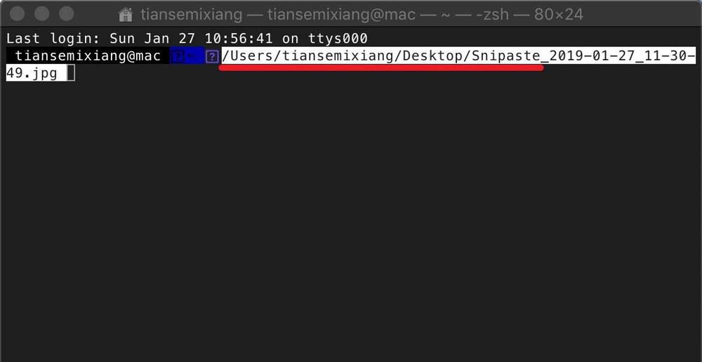 3、把要生成圖片路徑的圖片拖入到終端上,如下圖,然后此時會生成一個圖片的路徑了的。