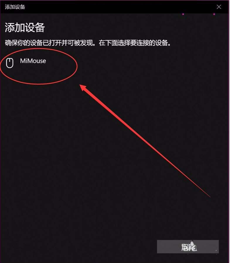 7、打開藍牙設備后,在添加設備窗口會顯示可連接的藍牙設備,本人連接的是藍牙鼠標。