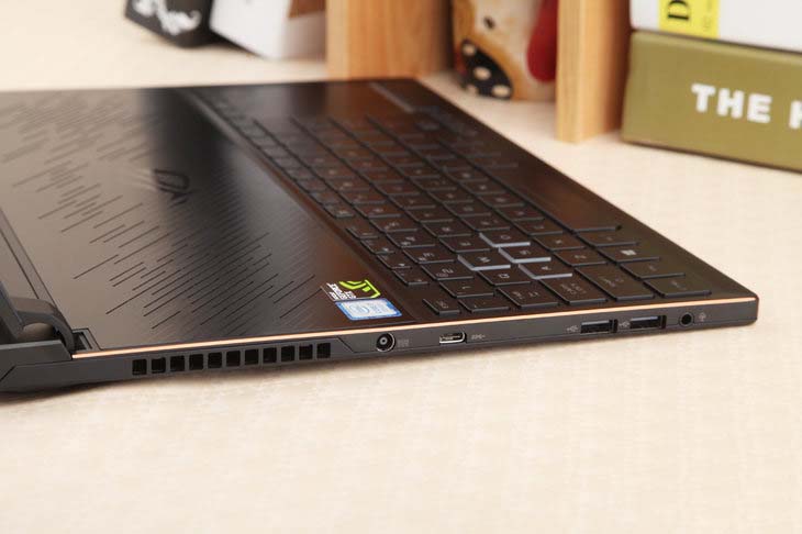 機身左側設有一個 DC 電源接口,一個 USB Type-C(5Gbps)接口,兩個 USB 2.0 接口,一個耳機/麥克風二合一接口。