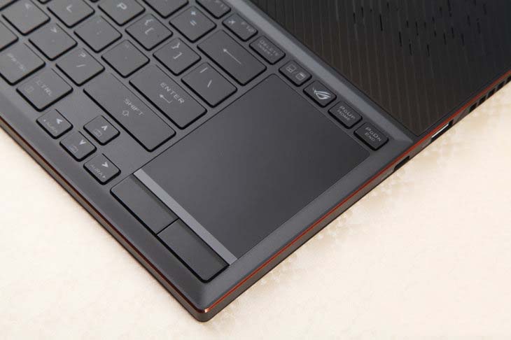 下置鍵盤的最大好處是可以完全避開所有內部的發熱組件,所以日常使用中幾乎不會被高溫困擾。缺點則是少了掌托的支撐,使用起來會有一些不便。手感方面,冰刃 3 的鍵程相較于第一代產品有了長足的進步,與多數 15.6 英寸筆記本相差不大,反饋速度非常快,點按手感極為舒適,在筆記本陣營中已經是的第一梯隊的體驗。