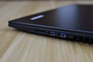 接口部分,神舟戰(zhàn)神Z7-KP7GZ體現(xiàn)出了游戲本的優(yōu)勢(shì)。機(jī)身左側(cè)接口分別為RJ45、USB2.0、3.5mm麥克和3.5mm耳機(jī)接口,機(jī)身右側(cè)接口分別為USB3.0×2和SD卡槽,機(jī)身后側(cè)接口分別為miniDP×2、HDMI、Type-C和電源適配器接口。總體來(lái)看,神舟戰(zhàn)神Z7-KP7GZ的接口數(shù)量還是非常豐富的,無(wú)論是接外設(shè)還是擴(kuò)展屏幕都非常方便。