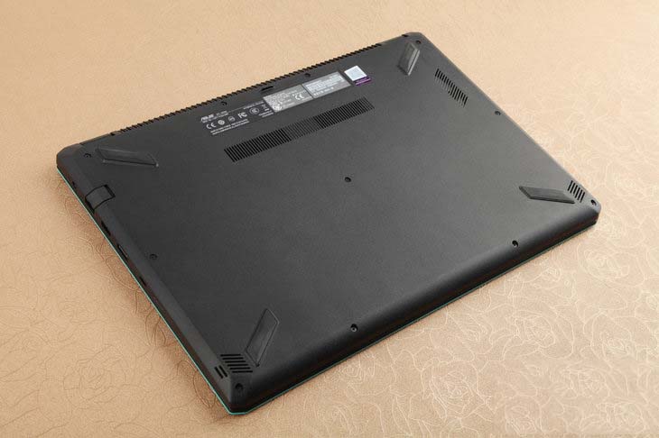 機(jī)身底部呈“X”形的腳墊設(shè)計(jì)讓單調(diào)的 D 面也變得動感起來。轉(zhuǎn)軸下方小面積的進(jìn)風(fēng)口設(shè)計(jì)體現(xiàn)了華碩對產(chǎn)品設(shè)計(jì)的極致追求。