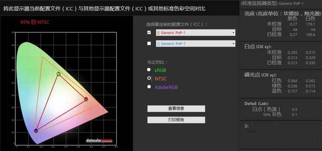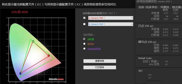 筆者使用Spyder 5 對這塊屏幕進行了測試,最終得到色域數值為63% sRGB、45% NTSC,屏幕亮度為178尼特。雖然這塊屏幕的亮度較低,但色域表現還是不錯的,尤其是考慮到產品售價,值得點贊。