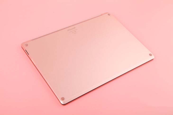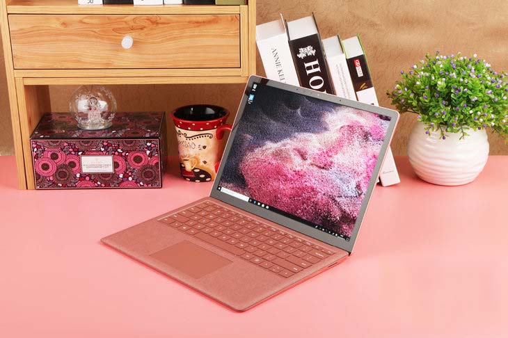 Surface Laptop 2 的調色并不是單純的粉色,它更像是粉色與紅色的結合體,雖然官方將之命名為灰粉金色,但是我并沒有看到灰色的影子。我相信,YSL 或是 Dior 又或者是其它某個品牌一定有一款口紅的顏色和它一樣。