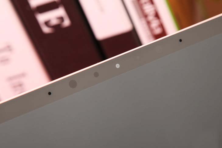 屏幕上方配有一組 Windows Hello 攝像頭以及雙陣列麥克風。