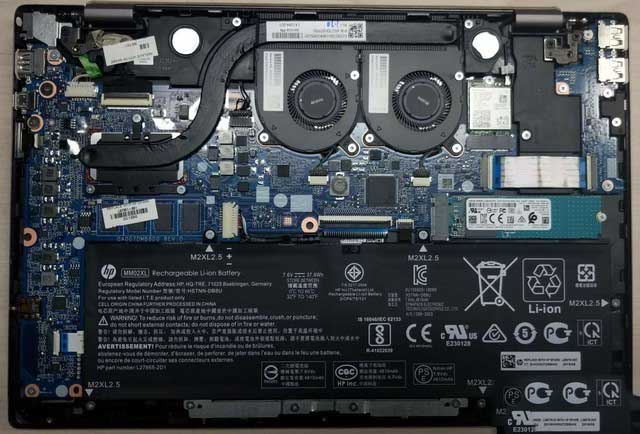 兩個揚聲器單元體積很大,難怪這款我聽著聲音有些與眾不同,也許是錯覺?固態硬盤需要說道說道,是來自東芝的BG3系列,PCIe*2帶寬。采用64層堆疊以及單芯片工藝,緩存、主控、閃存顆粒全部集成于一顆芯片中。因此這類芯片可以做到驚人的2230長度!整個固態除了這一面的一小部分芯片外別無他物。