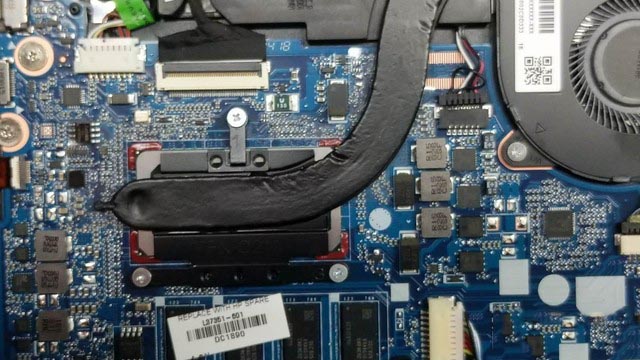 星13配備了串聯雙風扇的散熱模組,對于一款這個價位的核顯筆記本來說這并不多見。看內部結構并沒有預留的空焊GPU位置,相比雙風扇的設計更多是為了提高散熱效率。CPU四周采用耐高溫的紅色點膠。內存為板載單通道DDR4 2400Mhz,除了i3版,最高為8G。