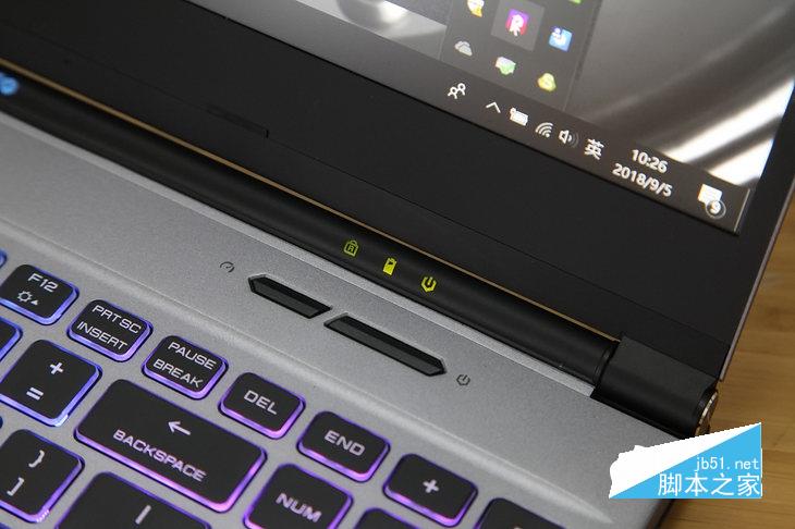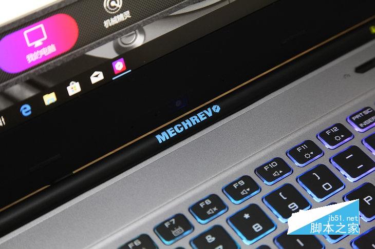 除此之外,筆記本的轉軸是本次發現的非常大的一個亮點之一,與傳統轉軸不同,機械革命賦予了Z2 Air屏幕轉軸更多的使命,兩端分別雕有LOGO飾邊,中心處的品牌標識在我們開機狀態下可以通過內置燈效軟件調節RGB顏色。