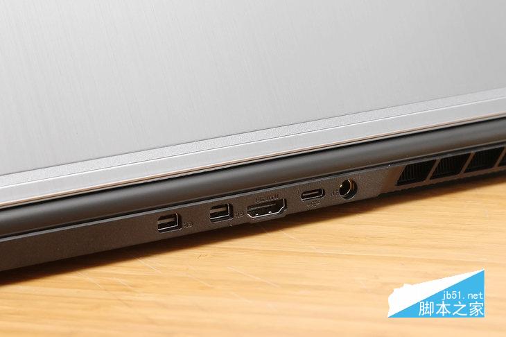 目前,很多輕薄游戲本電腦因受限于體積等因素,喜歡將部分接口裝在筆記本的轉軸下方,這樣既可以很好的利用空間,又可以為用戶賦予更多的擴展功能。在機械革命深海幽靈Z2 Air身上同樣如此,但這款筆記本將USB接口移到了筆記本兩側,將不需要插拔的HDMI接口和兩個Mini DP視頻輸出以及電源燈安裝在后面,這樣可以減少筆記本的翻合次數,有利于延長筆記本轉軸的壽命。從接口上可以看出這款筆記本支持三屏高清輸出。
