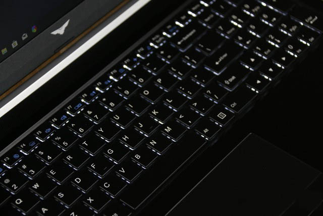 C面采用了整體全黑色+金屬的搭配,感官上很有質(zhì)感,觸摸板有一點點的磨砂處理,能夠在你細微操作時更加準(zhǔn)確,鍵盤自帶5級亮度白色背光,能夠在夜晚加班時為你提供一絲光亮。