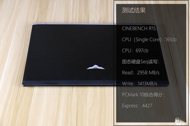 在基準(zhǔn)測試中,海爾凌越DS在CINEBENCH R15中跑出了單核161cb,總體697cb的成績,這對于i7-7700HQ來說屬于中等偏下成績,看來存在一定的降頻。而在固態(tài)硬盤測試中,由于海爾凌越DS使用了三星 PM961 NVME固態(tài)硬盤,所以讀寫速度非常喜人,實測讀取速率2958MB/s、寫入速率1413MB/s。而PCMark 10得分4427分表現(xiàn)也是相當(dāng)不錯的,看來高速固態(tài)的使用貌似為其提升了不少分數(shù)。