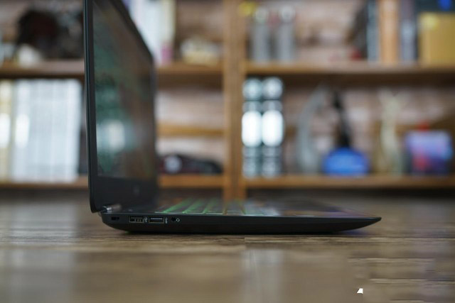 光影精靈傲騰版的機身左側接口從左到右依次是防盜鎖孔、USB2.0、USB3.0以及3.5mm耳機麥克風二合一接口。