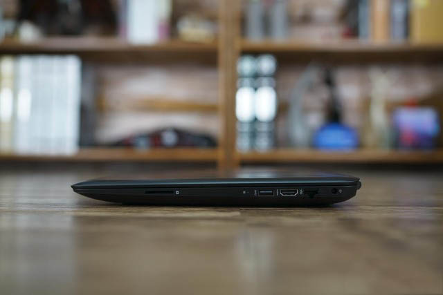 機身右側帶有SD讀卡器、USB3.0、HDMI、RJ45網線以及電源接口,光影精靈傲騰版的兩側接口布局很平均,種類很豐富,滿足日常使用的各類需要不成問題。