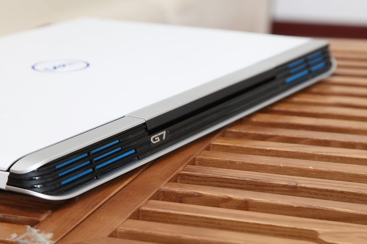 在筆記本后方出門口位置的兩側,增加了藍色格柵,也將顏值提升了不少,中間偏左的位置配有“G7”的金屬銘牌,有很高的辨識度