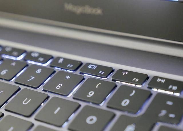 細節方面,榮耀MagicBook配備全尺寸定制鍵盤,1.3mm鍵程,有兩種明暗度、三級調節的鍵盤背光,作為一款非游戲本,也能配備背光鍵盤,無疑是較少見的。此外,榮耀MagicBook筆記本擁有指紋識別電源鍵,開機登錄只需要7.6秒。
