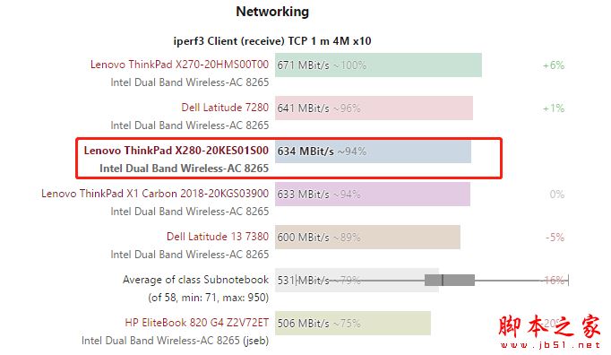 X280的 mini-Ethernet接口由Intel I219-V芯片驅動,WiFi由 Intel Wireless 8265 2x2 AC處理,他們兩者的結合在商用筆記本中非常常見。