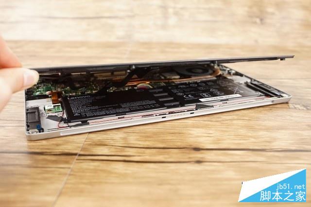 將屏幕分離后,Miix 520的內(nèi)部結(jié)構(gòu)便一覽無余。