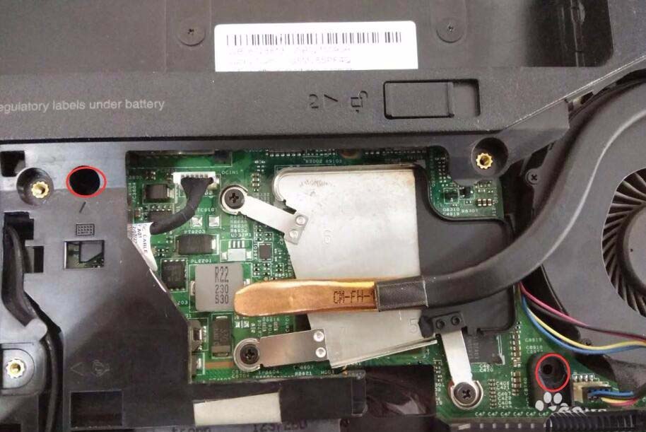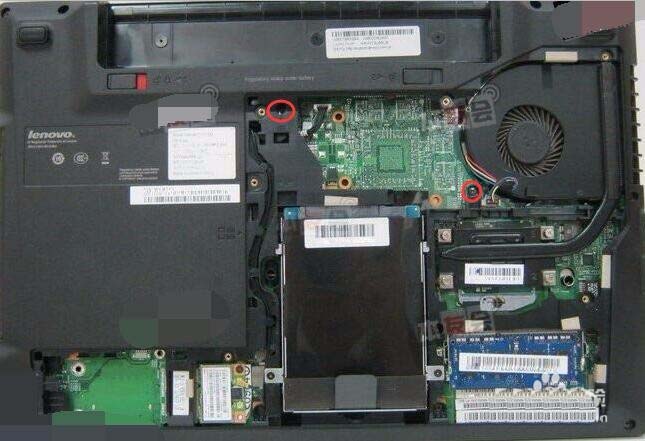 1、首先,將筆記本反過來面朝下。具體見下圖。根據(jù)圖示將紅圈部分螺絲去掉。