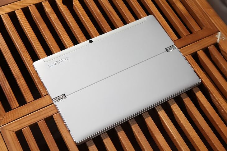 聯(lián)想Miix 520主機背面精選鉑金噴漆處理的鎂鋁合金材質(zhì),共有閃電銀、星際灰兩種配色可選。左上角的“Lenovo”標志以及從中間將聯(lián)想Miix 520主機背面一分為二的轉(zhuǎn)軸部分,向大家展示著來自大牌聯(lián)想的高品質(zhì)操守。