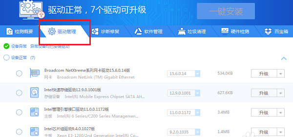 3、進去檢測界面之后,點擊驅動管理,這里如果有驅動異常的話,會自動檢測出來,重新下載安裝圖像設備驅動程序