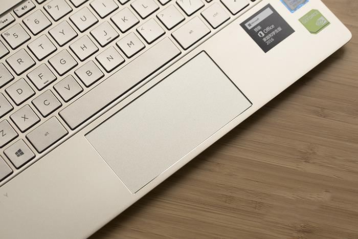 一體式的觸控面板,為了與整個機器的質感保持一致,表面還覆蓋有噴砂涂層。占據手托面積也足夠大,能提升放置時的舒適度但由于一體式設計,無論是左鍵、右擊還是雙擊都有一種松塌的感覺,并且觸控板按壓時與C面會出現一條明顯的縫隙。