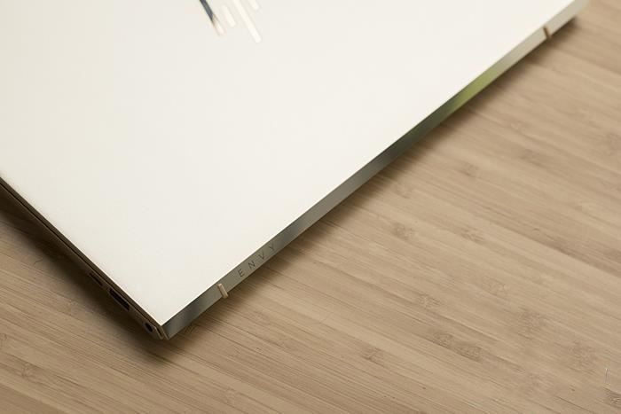 窄/微邊框屏幕是輕薄本之中很流行的設計,這臺ENVY13也不例外,左右邊框數據都為3.06mm,算上A框外包邊部分數據為4.96mm,屏幕占比率非常討好眼球,并且對于屏幕素質來說也是上乘的,采用13.3 FHD(1920x1080)IPS顯示屏,178°的可視角度應用在兩面窄邊框中稱得上是錦上添花,至少從左和右面看起來會非常舒適。