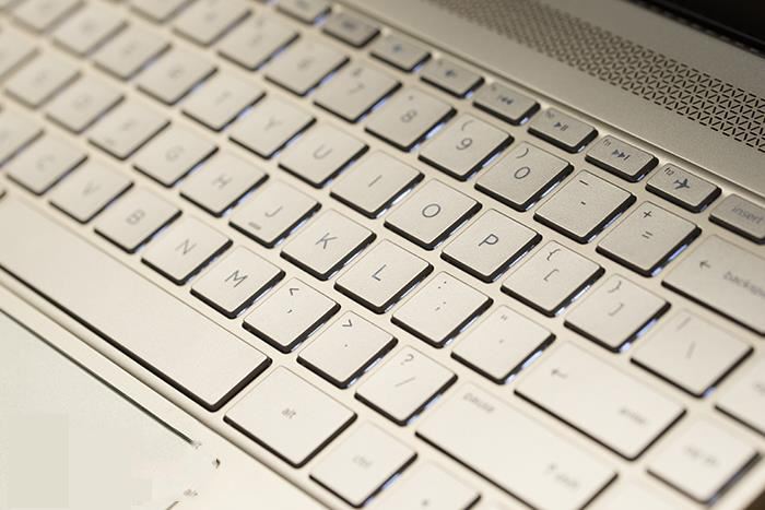 與Spectre x360一致的孤島式全尺寸背光鍵盤設計,鍵程適中回彈快具體數據為1.3mm,機械鍵盤玩家可以憑空感受下手感如何,小編個人習慣了青軸打字,這種軟綿綿的感覺不能適應。